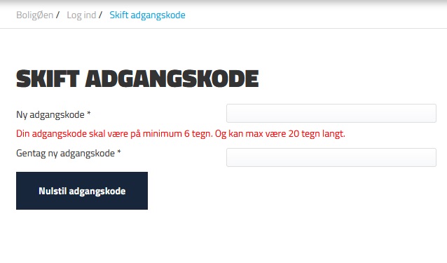 Red text: "Your password has to be at least 6 characters, but NOT over 20 characters."