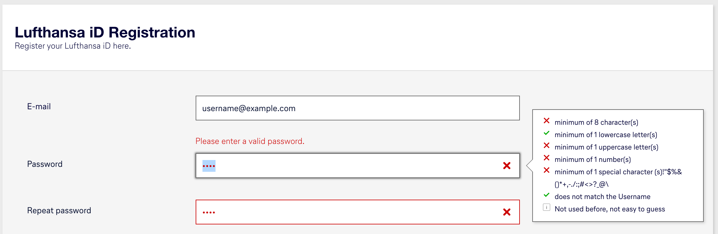 • minimum of 1 special character (s)!"$%&()*+,-./:;#<>?_@\