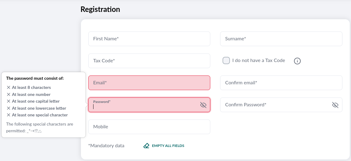 - Password must consist of at least 8 characters