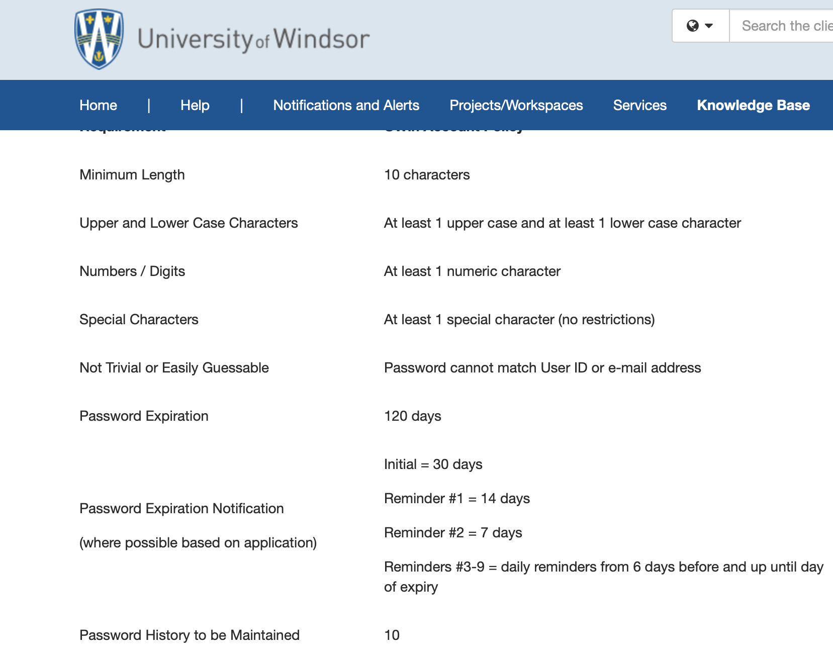 The password policy applies to alumni as well. Must be at least 10 characters long, with at least 1 upper case and 1 lower case character, at least 1 number, at least 1 special character. Password expires every 120 days, and you can't reuse an old one.
