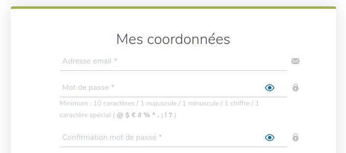 Your password must be at least 10 characters, with at least 1 uppercase character, 1 lowercase character, 1 number and 1 special character (only from this list: @, $, €, #, %, *, ., ;, !, ?).